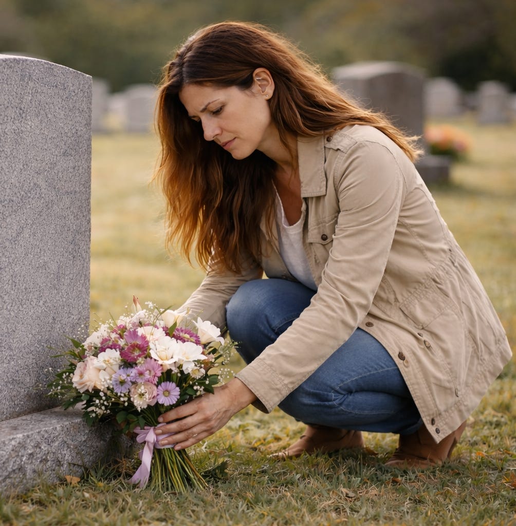 I parked in the same spot I always do. Close enough that I can see their headstone from here. Far enough that I have a minute to sit with myself before I have to walk over there and face it.